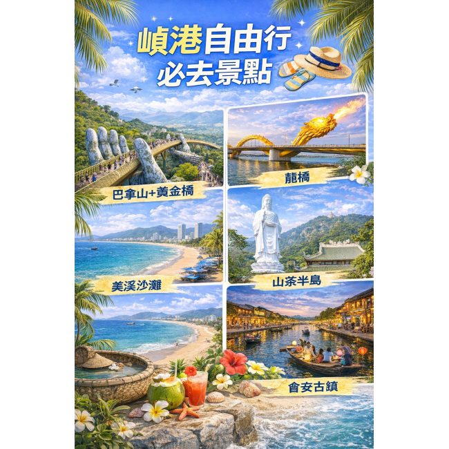 第一次去峴港,其實不需要跑遍所有景點,只要掌握重點即可。新手最常安排的 峴港必去景點 包含: